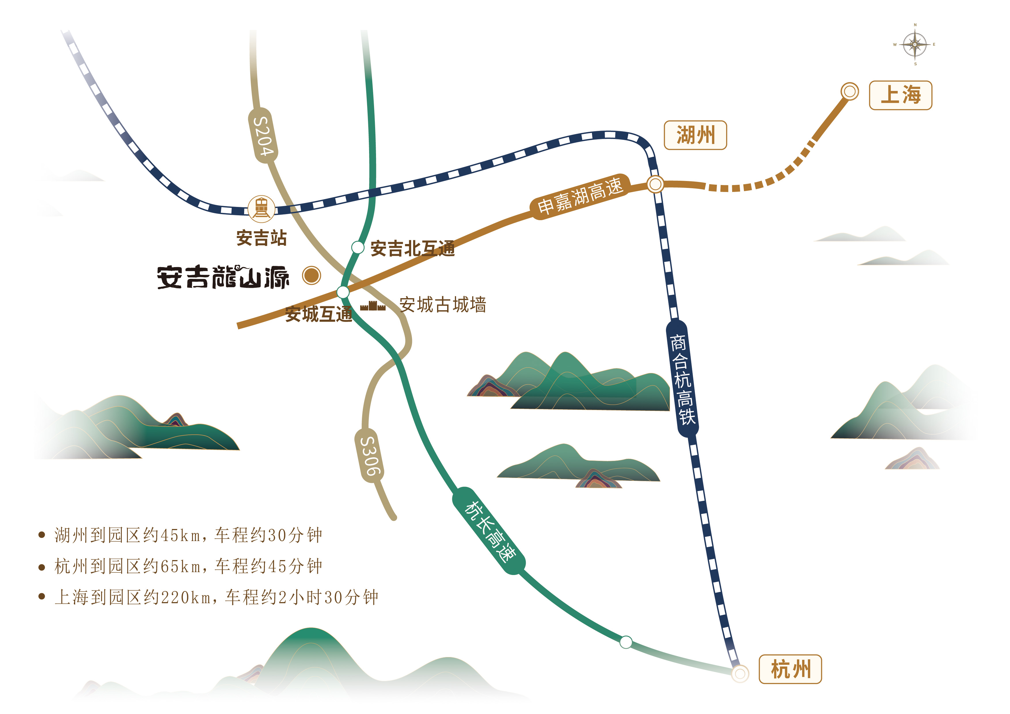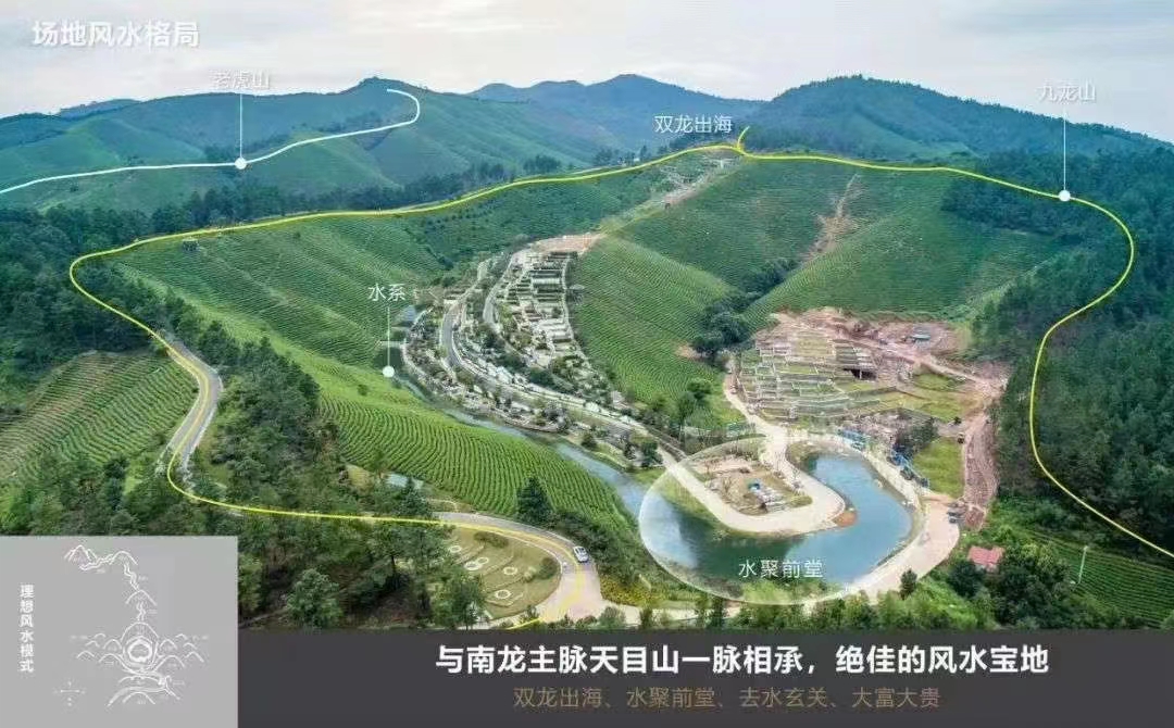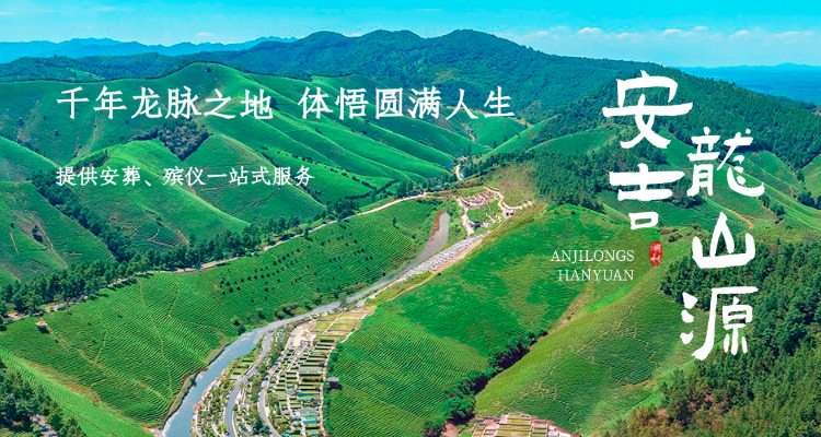 安吉龙山源总占地约7000亩,位于“中国竹乡”、“白茶之乡”——安吉,处"安吉古城遗址、龙山越国贵族墓群”大遗址保护范围内。规划“龙山人文纪念园、安吉古城国家考古遗址公园”两大版块,人文纪念园占地800余亩,汲取先进陵园营造理念,整体规划“宸园、雅园、慧园、韵园、锦园、福园、书苑”六个主题园、一个特色园。园区处六朝安吉城王脉之地,四象格局,山溪环抱,墓地风水极佳。